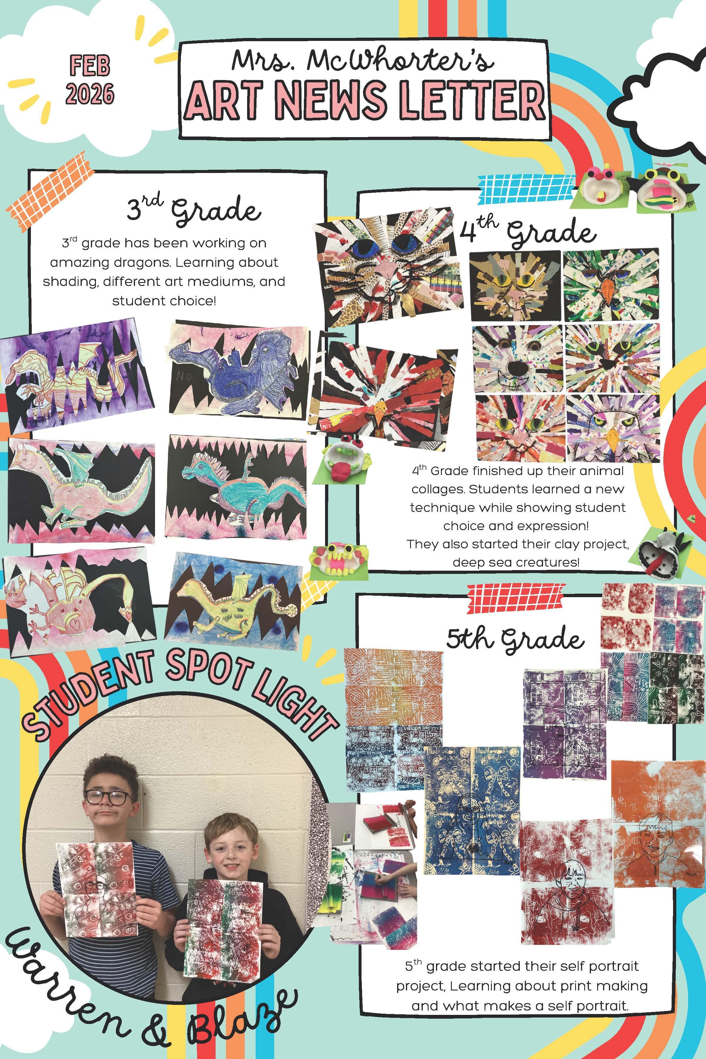 Fine Arts Newsletters From paintbrushes to percussion, our 3rd–5th grade students dive into the arts through hands-on projects and musical exploration. Check out the highlights in the monthly Art and Music Newsletters!